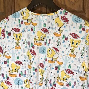 Looney Tunes Scrub Women's M Tweety Bird I'm in Season Christmas SS 3 Pocket Top