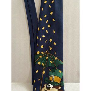 Looney Tunes Taz Tie Shamrock Shorts Coins Navy Blue Polyester Novelty Necktie