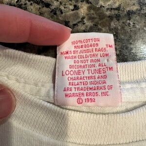 Authentic vintage 90s Looney Tunes Tweety Bird t-shirt featuring a bold oversized graphic print. Made from soft, worn-in cotton with classic single stitch construction, this true vintage tee is a collectible piece for fans and retro style lovers. Kids size XS (check measurements for best fit). Perfect for vintage streetwear, cartoon nostalgia, or adding a unique 90s vibe to any wardrobe.