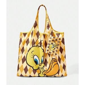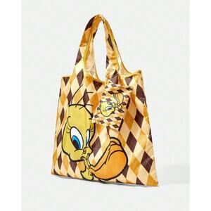 Looney Tunes Tweety Bird Yellow & Brown Checkered Reusable Tote Bag