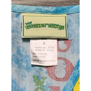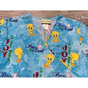 Looney Tunes Tweety Christmas Scrub Top Size S Blue Cartoon Print V-Neck Holiday