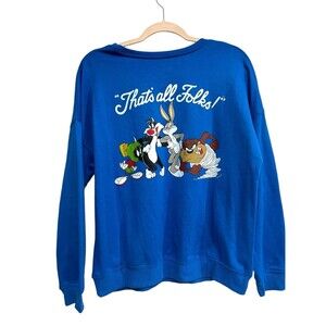 Looney Tunes Womens Blue Crewneck "Thats All Folks" Sweatshirt Size M