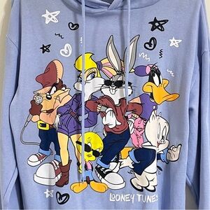 Looney Tunes Women's Bugs Bunny, Tweety Bird, etc. Light Blue Graphic Hoodie Size Small