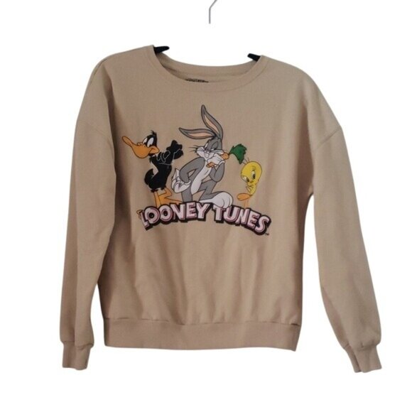 Looney Tunes Womens Graphic Beige Sweater Size M Kidcore Nostalgia Lounge Comfy