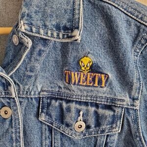 Looney Tunes Womens Vintage Tweety Bird Blue Demin Embroidered Jacket Size Med
