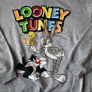 Looney Tunes Crewneck Sweatshirt Gray Bugs Tweety Sylvester Juniors Size Large