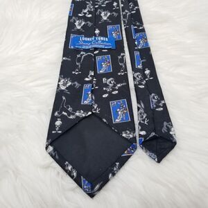 Looney Tunes Stamp Collection Black Bugs Bunny Taz Tweetie Polyester Neck Tie