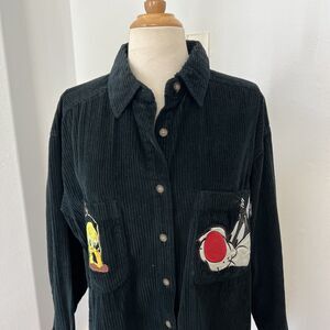 Loony Tunes Shacket Corduroy M Green Sylvester & Tweety Bird Button Up Shirt