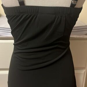 This is a black camisole top that features a lace overlay on the front, padded cups, so you don’t have to wear a bra, adjustable straps, and a silky, feeling black fabric back. This is marked size 5/7 but I’m going to call it a small, as you can see how it fits my small size mannequin. This is in excellent condition, was only worn a time or 2 for a couple of hours at a time. Like new. see photos for measurements, realizing that the bust measurement looks small, but it is stretchy and doesn’t account for the cup area. The other measurement is not including the shoulder straps, it’s just down the side of the shirt. Dress this up or down, super comfy, and cute.