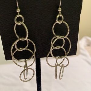 Light, Fun and Beautiful, these silver plated brass earrings have 7 circles of varying sizes with ridges that cascade down 2 1/2 inches. They will dress up any look and can transition from brunch with friends to a night out.