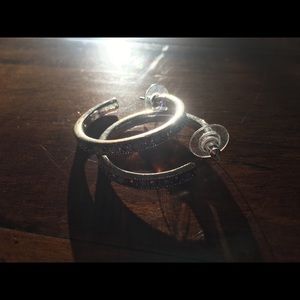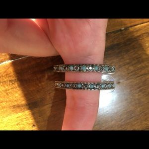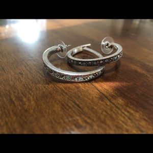 Two loop ( hoop) earrings. Turquoise stones and dark stones as well they come with backings and have been worn they have a little bit of wear on the side but are still beautiful!