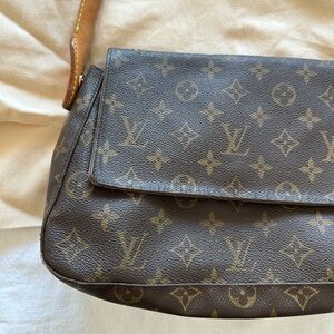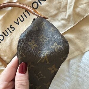 I’m used condition — minor cracking on canvas exterior and two rips on back of bag, which aren’t visible when carrying. See photos.