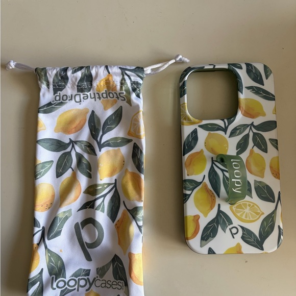 Bright lemon design. Durable and stylish. Easy grip with loop. iPhone 14 Pro