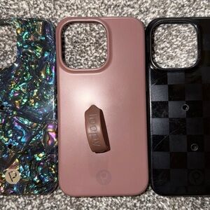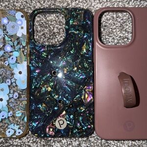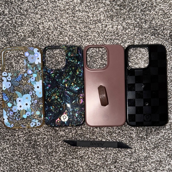 Blue Floral is Rifle Paper Co. , Iridescent, Brown, Black are Loopy. Black loop for either black case or iridescent. All for iPhone 13