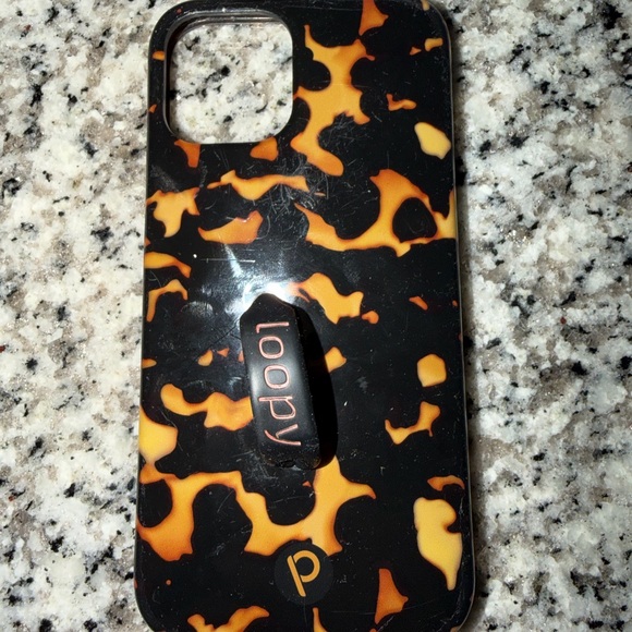 Iphone 12 eye-catching tortoise shell Loopy case. Secure grip with Loopy's signature loop. Offers excellent protection.