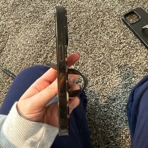 Elegant tortoise shell design. Features a secure loop handle for easy grip. Stylish and functional. For iPhone 15 pro right handed loop. Tortoise print.