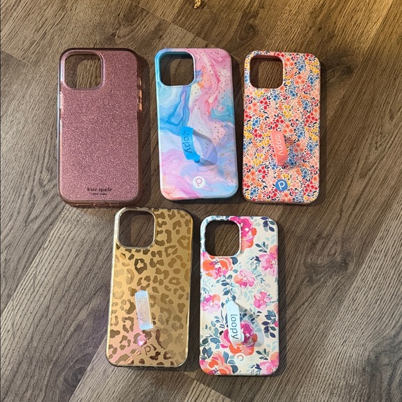 iPhone 12 Pro Max Loopy cases and Kate spade glitter case. Selling for $5 a piece. Most have darkening around the edges.
