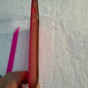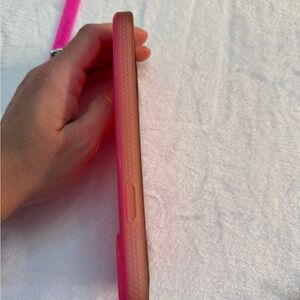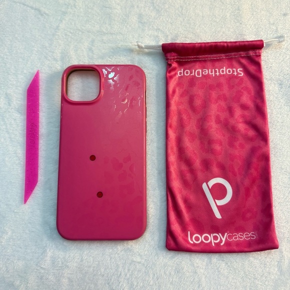 The case is a hybrid matte and gloss finish and comes with a Translucent and Glitter Hot Pink Super Loop and matching microfiber bag.