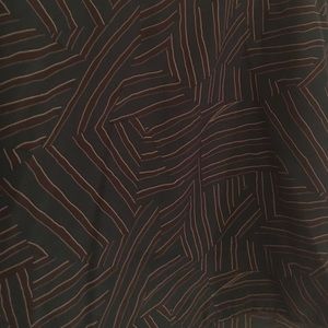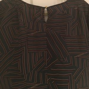 Silky loose blouse. Barely worn. So cute to wear to work or out! Has gold button and little peek hole in back. Dark green with brown design.
