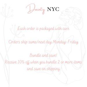 Dainty NYC offers women's fashion clothing clothes dresses tops shirts blouses jackets coats jumpers rompers jumpsuits loungewear hoodies cardigans pants jeans skirts trousers leggings shorts sportswear nightwear swimwear lingerie shirt lace bodycon faux fur shoes sandals slippers boots jewelry bags breathable lightweight fabric soft comfy casual cotton knit boho chic classy glam trendy romantic winter spring summer fall autumn 80's 90's silver rose gold