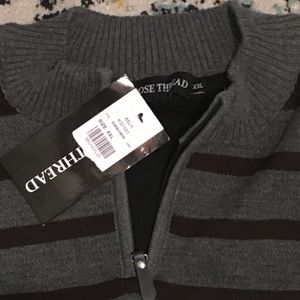 New with Tags! Loose Thread Sweater. Quarter zip. Size XXL. 100% polyester. Charcoal/Black/Brown. Very nice! pjap