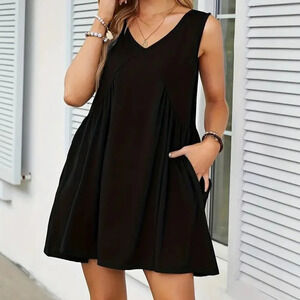 Loose-neck Ruffle Hem Tank Dress, Elegant Sleeveless Loose Dress, 95% Polyester,5% Elastane, Hand wash or professional dry clean,