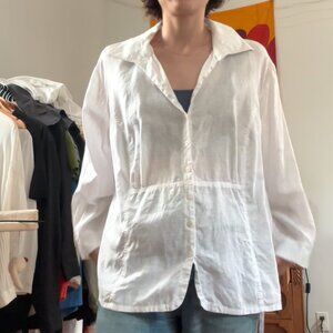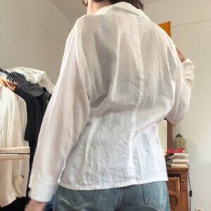 breezy, oversize button down that can be tied in the front or back. v-neck, wide sleeves, and nice seaming detail. great condition.