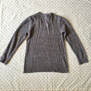 Very sweet sweater for getting cozy! In good used shape, interior tag has been removed. Sweater hanging loops intact but I always folded it. It's not super warm so it's perfect for fall or winter if you like layering. Easy to style, perfect with black pants. Shoes pictured also for sale in my closet. Heather ing between gray and white. Please ask if you have any questions and feel free to make an offer!