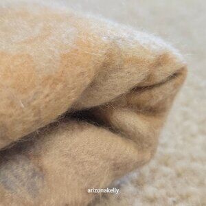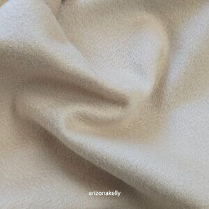 Scarf appears to be unused and has no scent on it. No pilling. No stains. No pet hair. I do want to draw your attention to two tiny spots on the creme side (pictured with a common toothpick for scale).