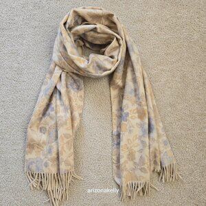 Impossibly thick and soft cashmere scarf from the masters at Lora Piana. This scarf has a floral design on one side and is solid creme/beige on the other. Check out the video.