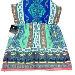 Loralette Dress Womens 2X Green Blue Paisley Print Summer Boho Beach Flowy NEW