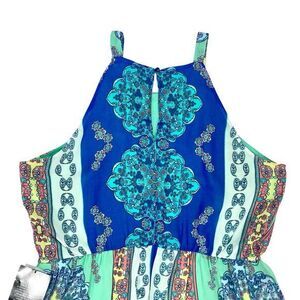 - Description: Loralette Summer Dress Womens 2X Green Blue Paisley Print Bohemian Beach Casual