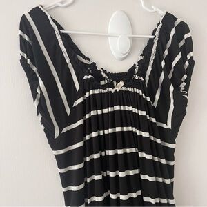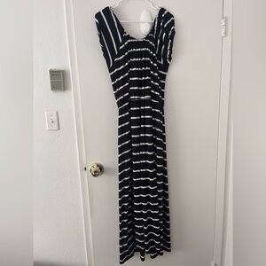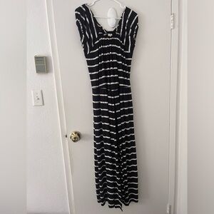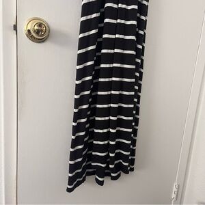 Loralette Maxi Dress Black White Stripe Front Slit 3X Plus Size