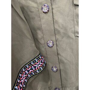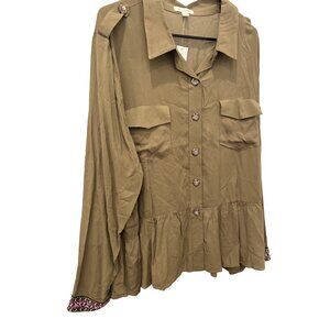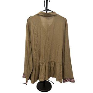 Loralette NWT Womens Button Down Peplum Shirt 2X Brown Embroidered Trim