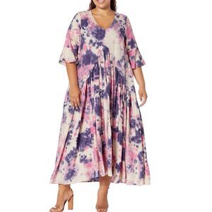 Loralette Valerie Maxi Dress Plus 20 Tie Dye Boho Hi Low Hem Summer NWT Resort