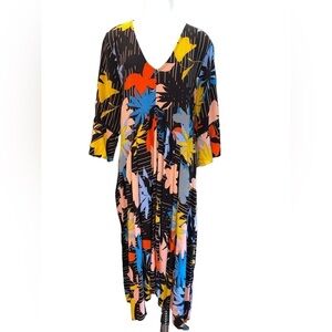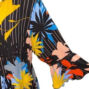 Loralette Women's Dress Size 20 Multicolor Floral Tie Back Bell Sleeves V-Neck