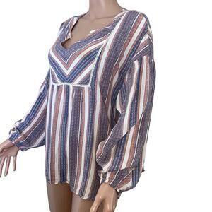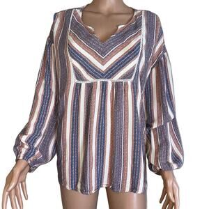 Loralette top blouse V-neck babydoll style striped plus size 2XL balloon sleeve