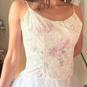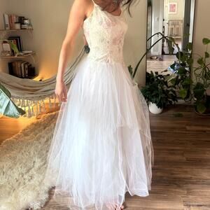 Tulle Wedding Gown, Ballerina, White Pink Floral Lace, Prom, Fairycore, Cottagecore, Princesscore,