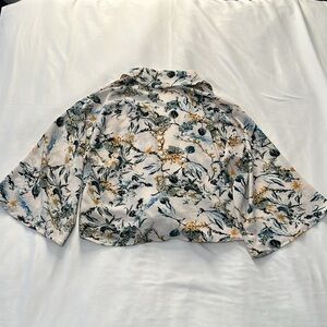 Loramendi Floral Print Tie Front Blouse with Bell Sleeves