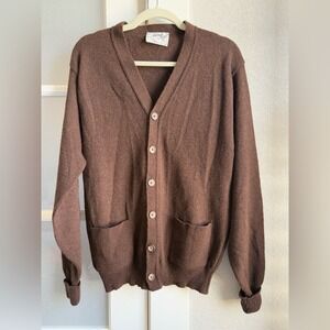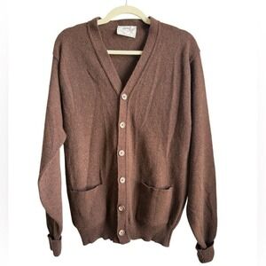Lord Jeff - Men's Vintage Wool Blend 2 Pocket Cardigan - Large -Brown - Made USA