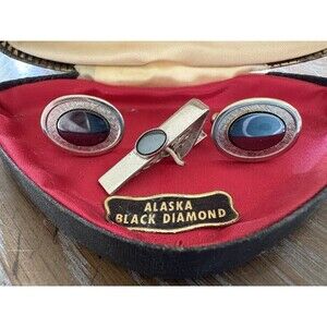 Lord Madison Alaska Black Diamond Cuff links And Tie Clip Vintage