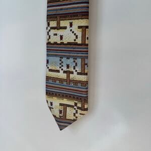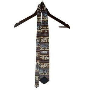 Lord Micro Faser Tie Retro Video Game Geometric Pattern Brown Blue Novelty EUC