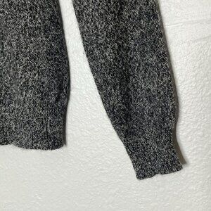 Luxuriously soft 100% cashmere sweater in a marled black and white knit. Crewneck design perfect for petite frames.
