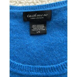 Lord & Taylor 100% Cashmere Round Neck Sweater Women Turquoise Blue Size L