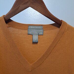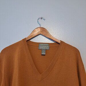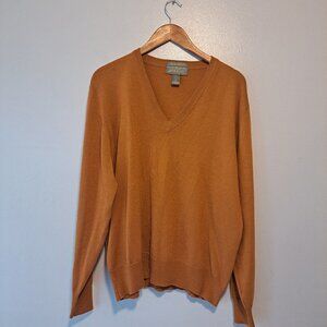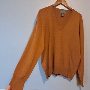 Lord Taylor 100 % Merino Wool Mustard Pullover V-Neck Mens Knit Sweater LARGE