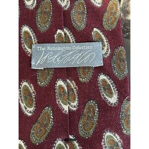 Lord & Taylor 100% Silk Tie Maroon Green Paisley