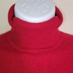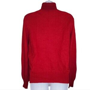 Excellent like new condition. No flaws to note. Women's Lord & Taylor 2 Ply Red Cashmere Turtle Neck Sweater Size Large.