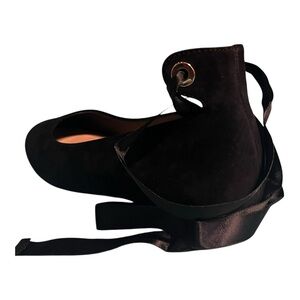 Lord & Taylor 424 Fifth Black Suede Penelope Ankle Strap Flat Shoes 6M Women’s