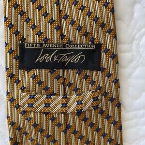 Lord & Taylor 5th Avenue Collection Silk Tie Gold Blue Dot Geo Stripe