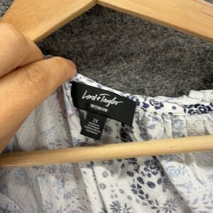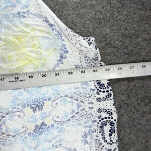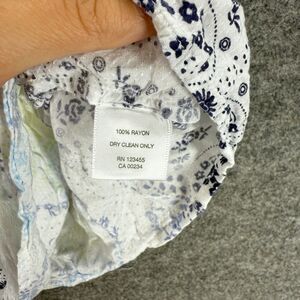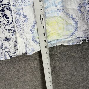 Lord + Taylor Blouse Women 2X Plus Blue Geometric V-Neck Tasseled Sleeveless